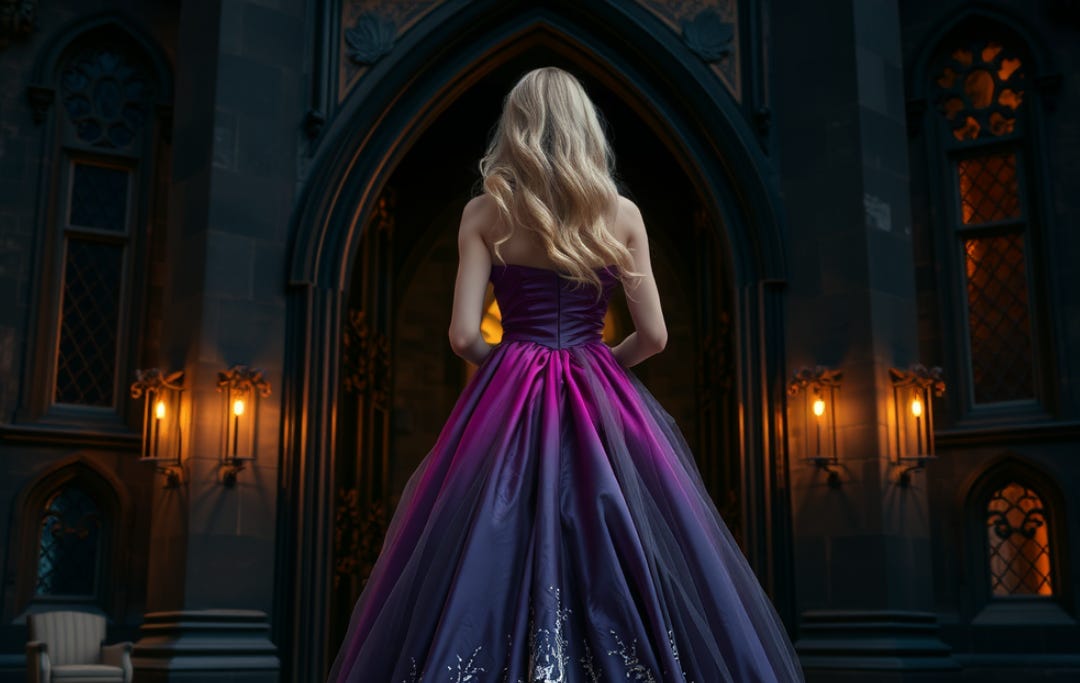 A gray stone castle looms over glass ruins, its turrets hiding memory beads that rewrite minds and games deadlier than war. Legacy sneers at the electrified gates—her branded thumbs burn under gloves as her sister hisses warnings, thrusting her into a world where political heirs sharpen wits sharper than swords.